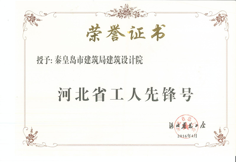 2016年4月,我院被河北省總工會授予“工人先鋒號”光榮稱號。